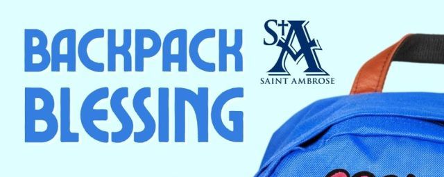 Anyone going back to school is invited to bring their backpacks to be blessed at any of our weekend Masses! We'll also have a special gift to take as you start the new school year! Mass times in the Church: Saturday: 4:30 pm Sunday: 7:30 am, 9:00 am, 10:30 am, 12:00 pm, and 5:00 pm